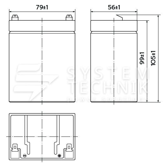 - Срок хранения без подзаряда: 6 мес. при 25°C;