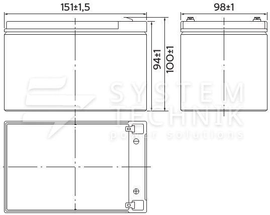 - Срок хранения без подзаряда: 6 мес. при 25°C;