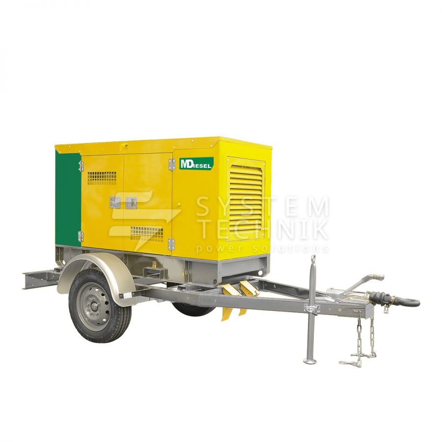 Дизельный генератор MitsuDiesel МД ЭД-16-Т400-1РКМ29 в шумозащитном кожухе на шасси на прицепе в Егорьевске